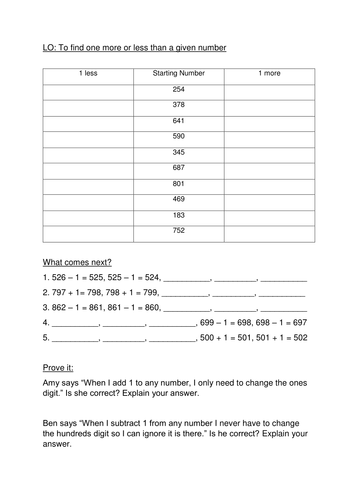 This worksheet includes instructional diagrams with dienes or counting cubes to teach your class how to visualise a maths problem before solving it.Ordering numbers to 1000 worksheet.In 10 more or less pupils practise finding 10 more or 10 less of a given number as per the year 3 curriculum objective in the maths programme of study number number and place value.
