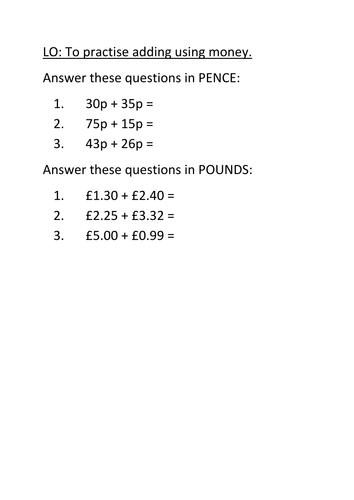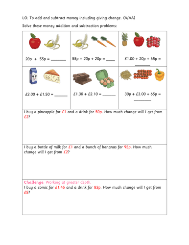 This gives practice in both adding and subtracting with decimals and using money notation.