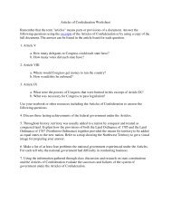 Articles Of Confederation Worksheet