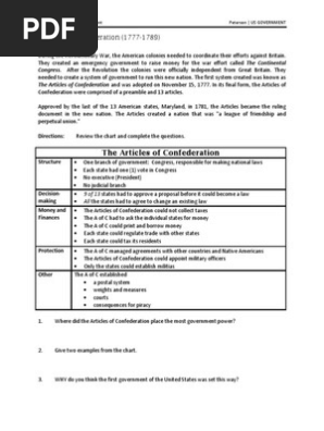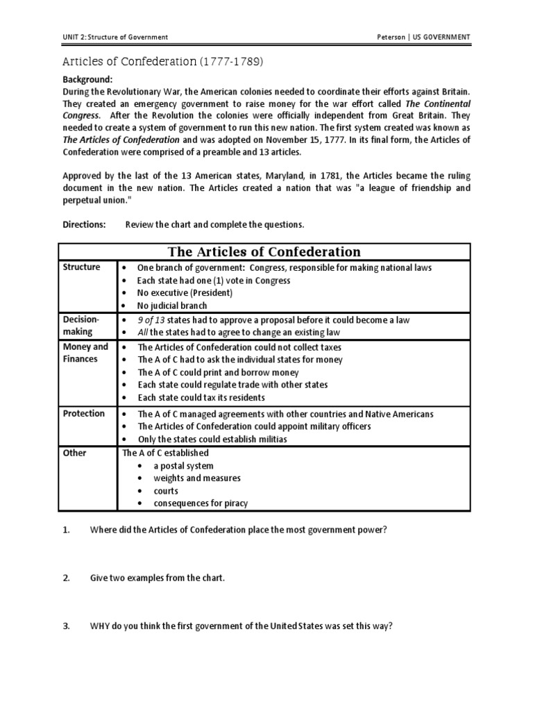 View the articles of confederation worksheet 2020 docx from asdf 456 at shitennoji university international buddhist university.Articles of confederation worksheet teachers pay teachers doc 77 5 kb articles of confederation worksheet description and comparison to constitution one page description of articles of confederation and back is a worksheet with discussion questions and a chart to compare the articles to the us constitution also includes info on john hanson first us president.Name carlos garces date 9 21 20 class 4 articles of.