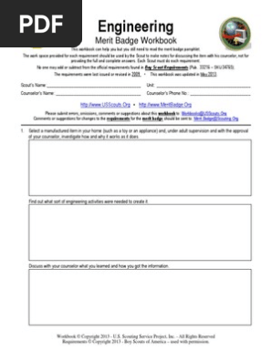 Engineering Merit Badge Worksheet Boy Scouts Of America Scouting