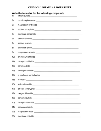 Ionic compound formula writing worksheet chemical formula writing worksheet solutions.Chemical formula worksheets chemical formula this chemical formula writing worksheet contains over 200 compounds to solve involving binary and polyatomic ions.Here is my accumulated knowledge and methodology.