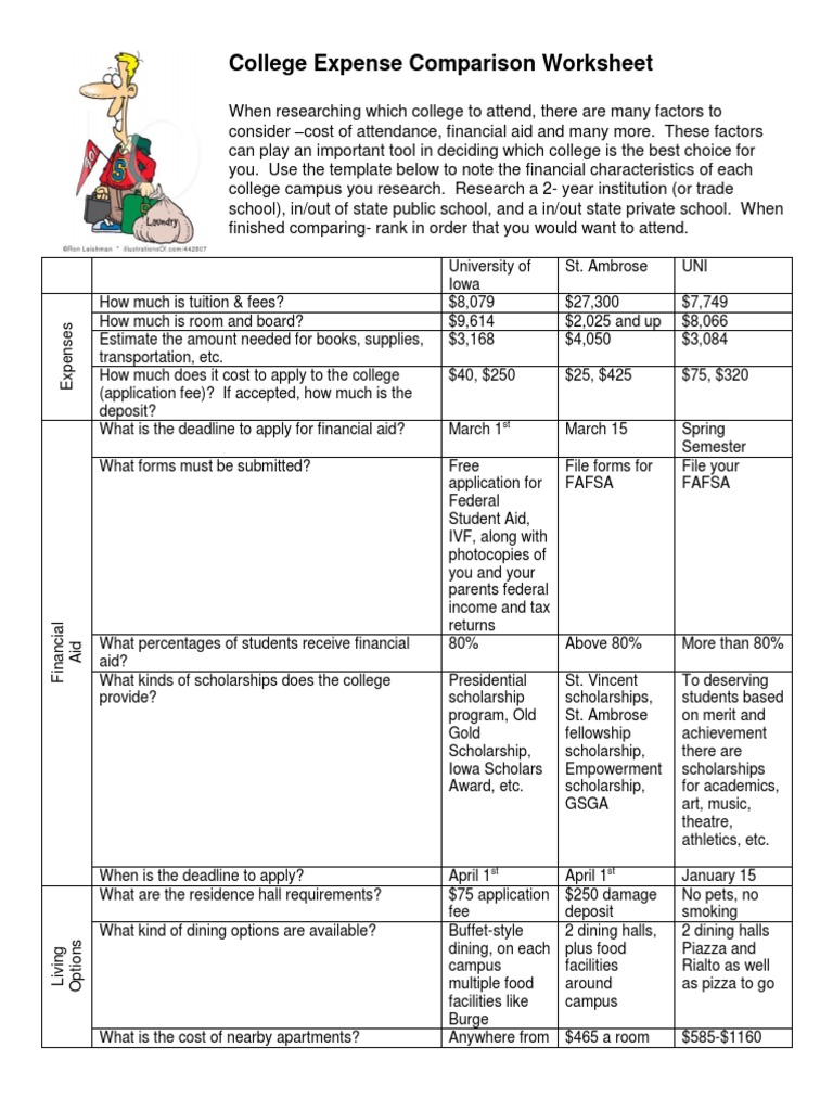 A college comparison worksheet is a great tool that is capable of influencing the student.College comparison worksheet college name location distance from home environment type of school school setting location and size of nearest city co ed male female religious affiliation campus visit when.These calculators allow your student to get a better picture of what a school will cost out of pocket as they take into consideration other sources of funding.