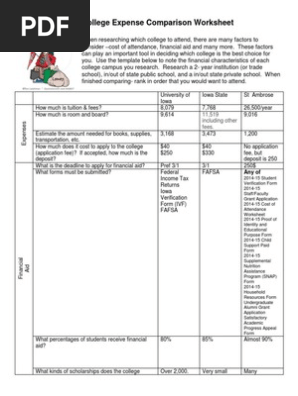 The sheet can easily compare the data from five colleges or even more.Enrollment physical size of campus.What is a college comparison worksheet.