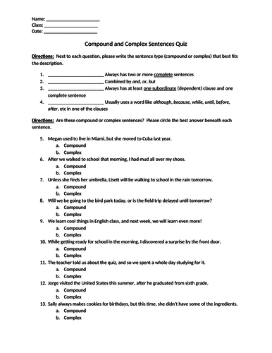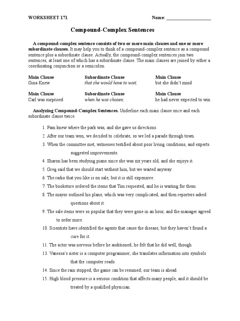 Complex Sentences Worksheet