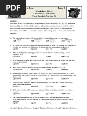 Consumer arithmetic worksheets math.If your answer is a percent do not enter the percent symbol.This is usually paid monthly.Mathematics worksheets solutions 868 tutors preparation for caribbean form 5 mathematics.