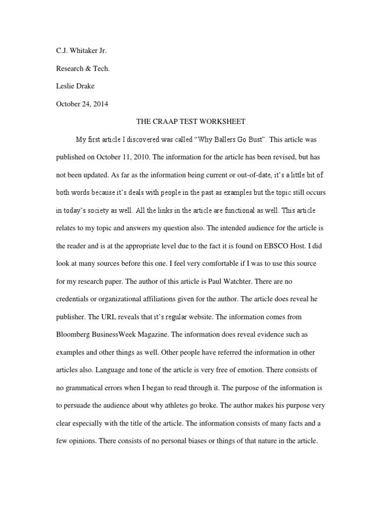 The timeliness of the information when was the information published or posted.Craap source evaluation worksheet adapted by wendy pickering kristi middleton and david oar from.For our upcoming essay 2 research paper we are expanding our essay 1 on success and creating a more developed persuasive argument with oppositional points and refutation as well as adding 3 6 credible library research article s into our discussion to back up our claims.