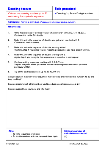 Multiplication doubling and halving worksheets teaching.