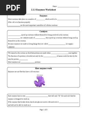 2 2 3 enzymes worksheet.Student answers will vary but should include the following concepts.Naming enzymes enzymes are named by adding.