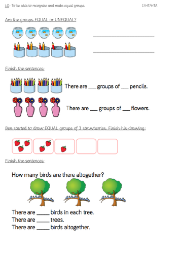 Equal Groups Multiplication Worksheets
