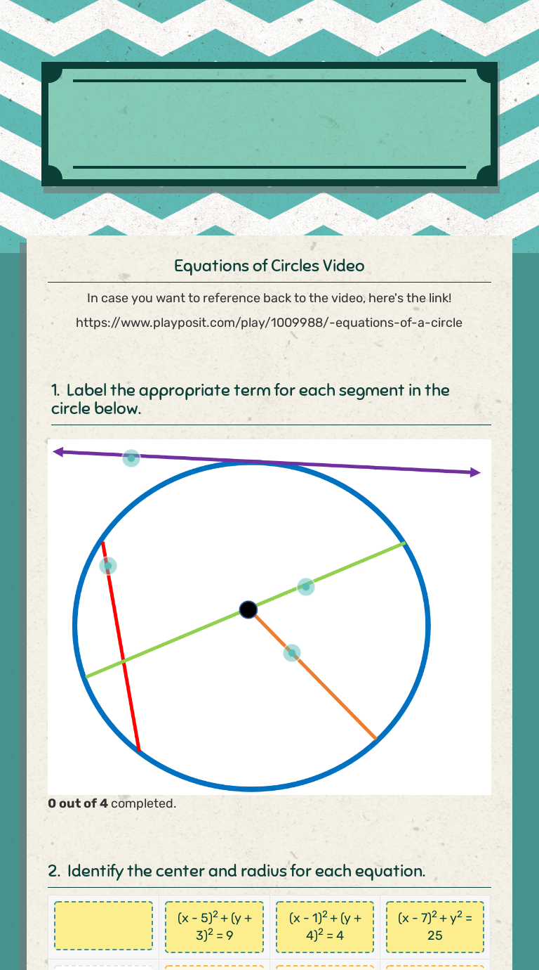 Page through some of these worksheets for free.Write equation of circle given center and radius worksheet x2 4x 4 y2 6y 9 16.X2 y2 4x 6y 3 0.
