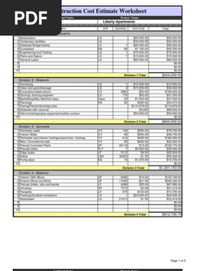 Estimation Worksheets For Construction