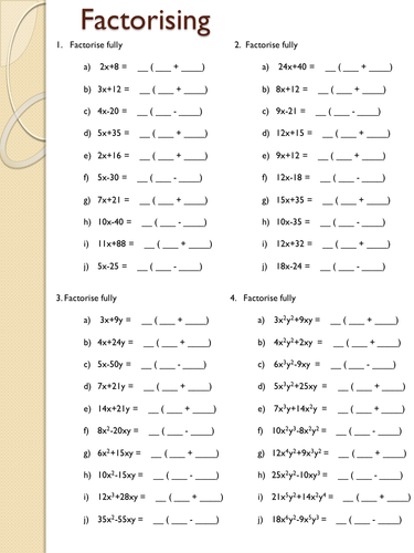Factorising linear expressions worksheet teaching resources a short differentiated worksheet on factorising linear expressions.Our premium worksheet bundles contain 10 activities and answer key to challenge your students and help them understand each and every topic within their grade level.1 6x 92 20y 5z.