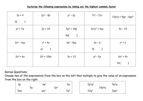 Some of the worksheets for this concept are factoring linear expressions 1 factor linear expressions work factors of algebraic expressions grade 7 math expressions and equations hands on standards 8x factorising algebraic expressions factoring quadratic expressions 33 factoring algebraic expressions.Factoring linear expressions worksheets teaching.Worksheets are factoring linear expressions 1 work 2 6 factorizing algebraic expressions factor linear expressions factorising algebraic expressions factoring quadratic expressions work factors of algebraic expressions simplifying variable expressions algebra simplifying algebraic expressions expanding.