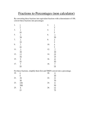 Sheet 1 sheet 2 grab em all.Any fraction even a mixed fraction can be converted to a percentage.For simple fractions with denominators that are easily multiplied to reach 100 the process of finding an equivalent fraction is an easy path to converting a fraction to percentage.