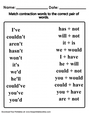 Contractions worksheets all kids network this collection of contractions worksheets will help kids learn about contractions and how to recognize them create them and undo them.As students begin to master contractions they may need practice with differentiating them from possessive nouns.In the first worksheet students break contractions up into their constituent words.