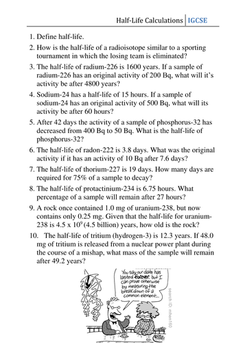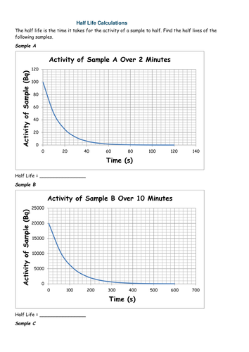 If each half life is 5 seconds then in one minute 60 seconds there are 12 half lives.I use this as an introduction to reading half life graphs and doing half life calculations but it could equally be used an an exercise.Half life worksheet mrs.