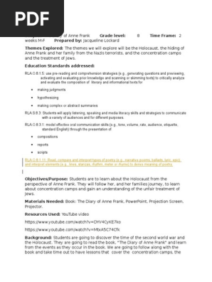 This two page reading passage tells the story of anne frank her life in hiding from the nazis during the holocaust and how her diary came to inspire the world.This literacy module anchored by a 600 word outline of the holocaust consists of a number of activities designed to improve reading comprehension spelling and vocabulary in addition to research and writing skills.We provide some worksheets to help students understand pertinent vocabulary.