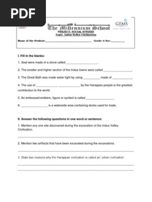 Indus valley civilization worksheets for kids.By about 2500 bce the indus valley civilization had developed at harappa and other sites.This civilization existed from about 3000 bce to about 1500 bce which means it existed at about the same time as the ancient sumerian and egyptian civilizations.Urban planning and architecture.