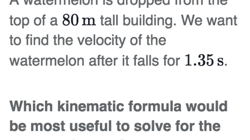Georgia is jogging with a velocity of 4 m s when she accelerates at 2 m s2 for 3 seconds.Multiple choice questions test your understanding of how to solve kinematics problems by exploring common variables kinematics equations and more.If the final velocity was 5 00 m s.