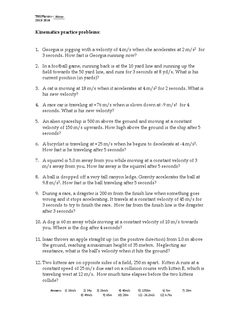 Kinematics practice problems worksheet 2 6 r kinematic equations 1.Uniform accelerated motion other contents.Kinematics practice problems worksheet answers.