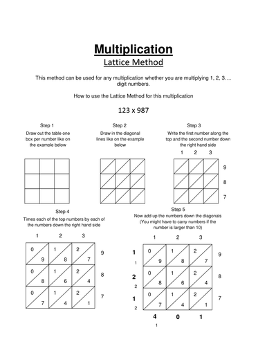 Lattice multiplication free math worksheets free.Lattice multiplication worksheets for kids lattice multiplication use lattice multiplication method to nd the product in each problem.Lattice multiplication method maths with mum we begin by arranging the digits of 86 and 67 as shown in the image below with 86 written above the lattice and 67 written to the right of the lattice.