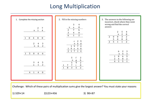Grid method and chinese method feel free to rename them if you know them by any other name.Long multiplication teaching resources long multiplication.Tes global ltd is registered in england company no 02017289 with its registered office at 26 red lion.