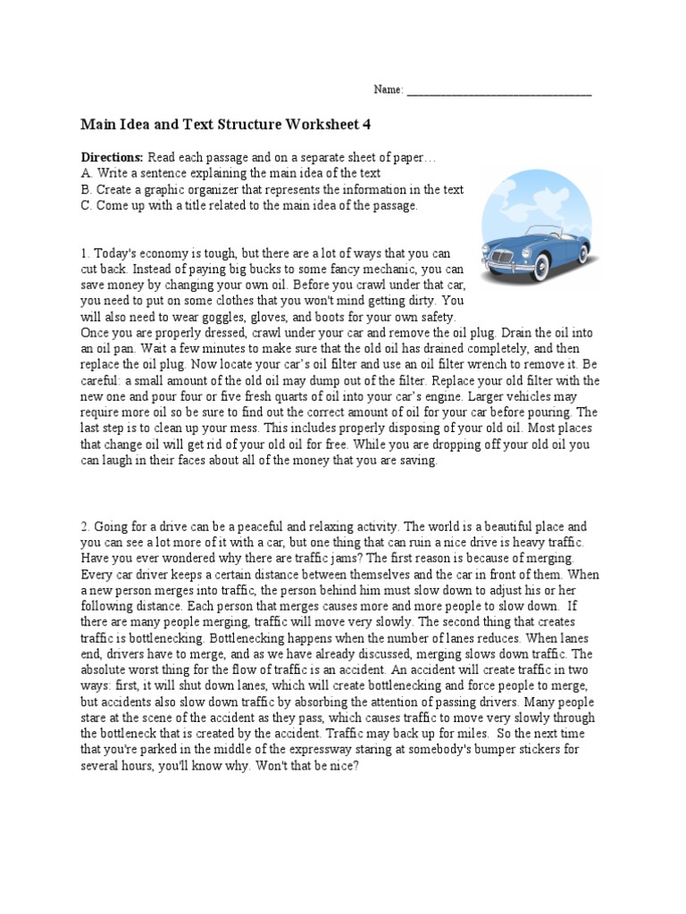 Identify the main ideas and supporting details of texts.Main idea worksheet for 4 6 id.The last two worksheets also introduce the concept of summarizing a text.