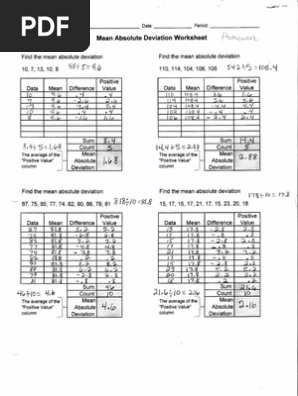 These mean absolute deviation notes and worksheets are meant for an algebra 1 statistics unit.Find the mean up to 6 data values worksheet 2.Incorporate these free worksheets on mean absolute deviation and help students understand this concept.