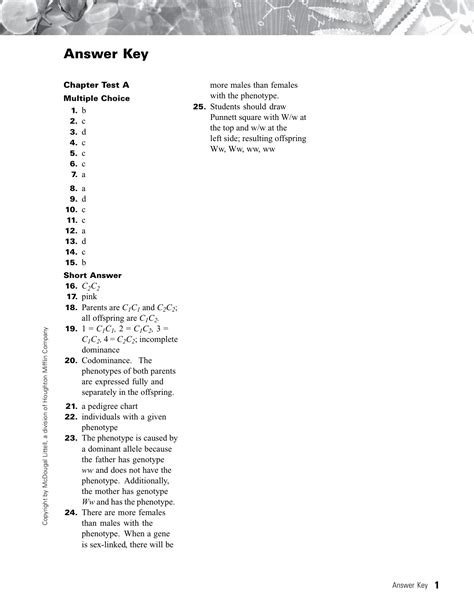 Mendelian Genetics Worksheet Answers