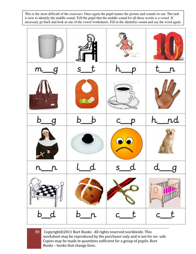 Tackle short vowel sounds with this phonics worksheet.Students look at the pictures on the worksheets and say the words aloud.And this is done by having the ability to break words into sounds and to blend sounds to make words.