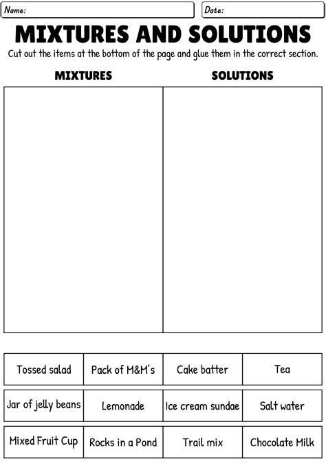 Cut out each box on the next page.Name class 1 state with a reason whether each of the following is a homogeneous mixture solution or a.Mixtures and solutions sorting activity mrs.