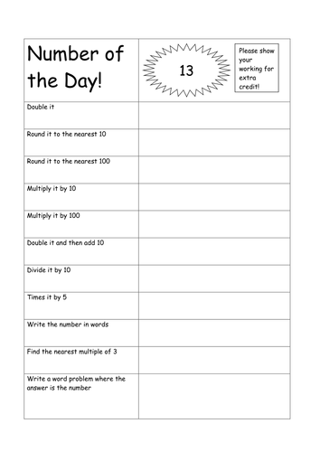 Number of the day worksheet.Number of the day worksheets teachers pay teachers pdf 1 58 mb these number sense worksheets to 100 or number of the day 1st grade worksheets feature 91 mats that help students learn about place value to 100.They are such an easy way to differentiate for a variety of learners during morning work or math rotations.Number of the day template worksheets teaching resources.