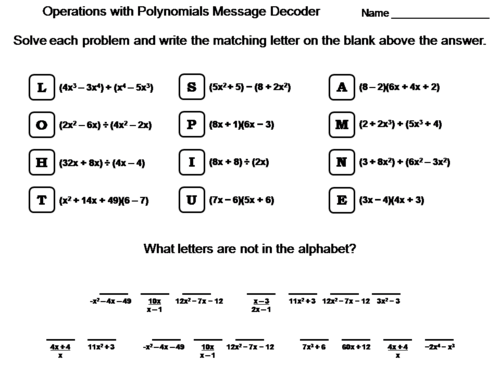 Multiplying monomials with polynomials worksheet.Operations with polynomials worksheet.Division of polynomials worksheets.