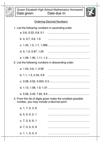 Free math worksheets from k5 learning.The student will be given a list of decimal numbers and be asked to order them in ascending or descending order.3rd and 4th grades.