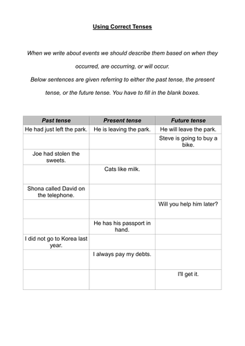In these worksheets students classify sentences as present perfect past perfect or future perfect.Showing top 8 worksheets in the category past present and future tenses.This worksheet was orginially used for 7th grade language art.
