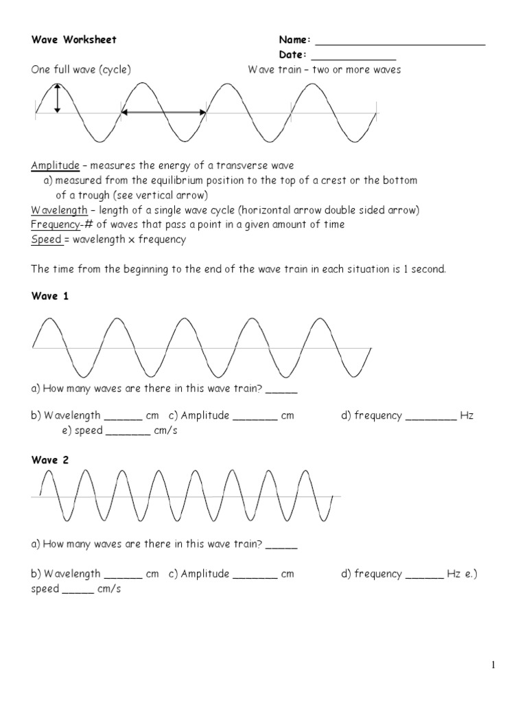 17 1 mechanical waves a mechanical wave is a disturbance in matter that carries energy from one place to another.Some of the worksheets displayed are name date anatomy of a wave work wave speed equation practice problems teachers club science formclass p hysics waves name light properties work wave properties lesson 1 sound and music the physics classroom g4 u2 l3 lesson 3 waves a guide to sound waves.Some of the worksheets below are waves worksheets middle school in pdf label parts of a wave and describe some of the properties and behavior of waves wave types wave speed equation practice problems understand crests troughs wavelength amplitude.