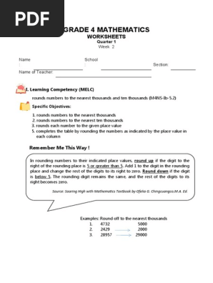 Create worksheets for rounding whole numbers to the nearest ten hundred thousand and so on for grades 2 6.In latter grades the exercises are similar but with larger numbers.Rounding up and rounding down.