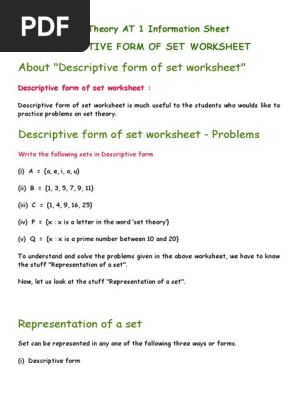 Set builder notation worksheet.Set builder notation definition and examples set builder notation a set builder notation describes or defines the elements of a set instead of listing the elements.X x2 0 1 summary.Set builder notation math set builder notation looks like this.