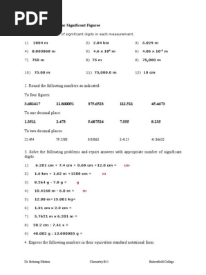 Significant Figures Practice Worksheet
