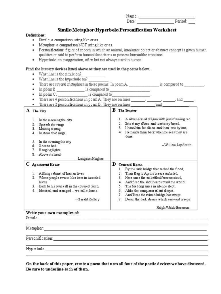 Simile metaphor hyperbole or personification worksheet simile metaphor hyperbole or personification worksheet about this worksheet.Lesson 8 similes metaphors and personification level 5 lesson 8 similes metaphors and personification 53 a.It is fine to slightly modify your sentences in your answers.