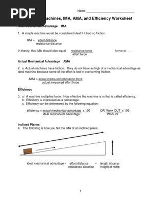 Simple machines ima ama and efficiency answer key.Match the simple machine with its correct definition by writing the corresponding number in the answer column.Inclined plane wedge wheel and axle screw lever and pulley.