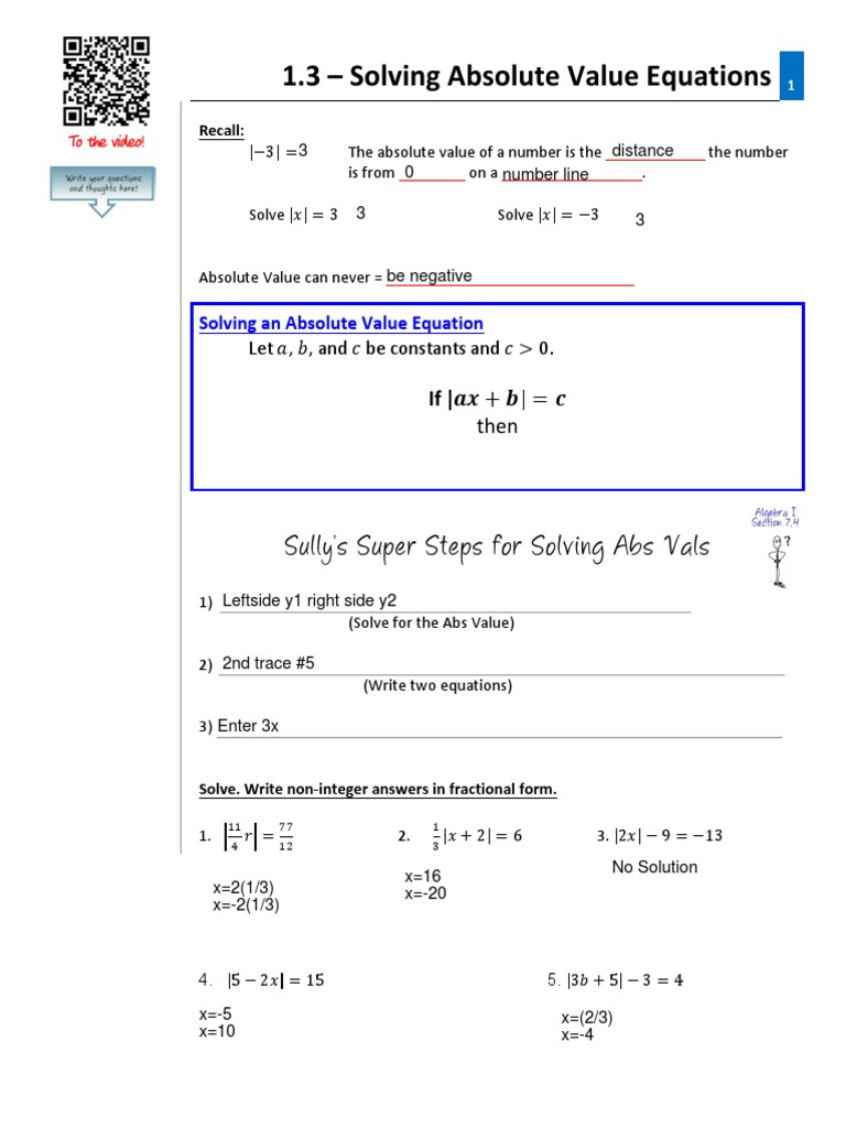 Solving Absolute Value Equations Worksheet
