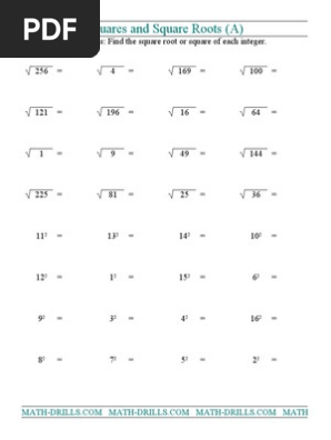 Thank you for using the math drills search page to find math worksheets on a topic of your choice.Search square page 1 weekly sort 392361.Free square root worksheets pdf and html on this page you ll find an unlimited supply of printable worksheets for square roots including worksheets for square roots only grade 7 or worksheets with square roots and other operations grades 8 10.