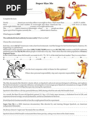 Fill in the blanks type of activity l.Supersize me part one vocab and intro educational documentary on the effect of fast food on the usa and the world focusing on morgan spurlock s decision to eat mcdonald s for 30 days.Simply because we want to supply programs in one true and trustworthy reference all of us current useful info on various subjects plus topics.
