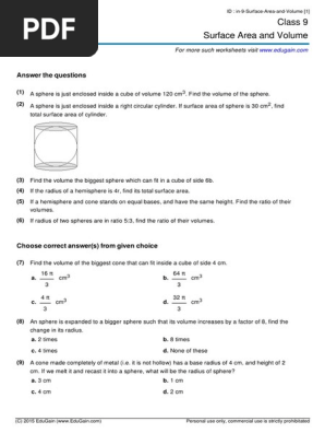 We have fun and challenging surface area and volume pdf worksheets on a range of topics including calculating the area of rectangular prisms and the volume and surface area of cones and spheres.Surface area worksheets comprise an enormous collection of exercises on different solid figures.Free worksheets for the volume and surface area of cubes rectangular prisms find here an unlimited supply of free printable worksheets for the volume and surface area of cubes rectangular prisms including with fractional edge lengths.