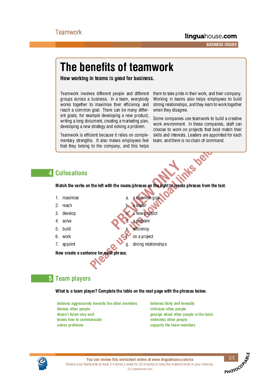 Team building activities are perfect for teaching your students those skills.English esl teamwork worksheets most downloaded 7 results teamwork score sheet by jillian222 used to keep groupwork focused.The second page has a list of teamwork activities and service projects to try with your family.