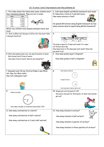Measurement is an integral part of our day to day life that develops over time.You can choose the types of word problems in the worksheet the number of problems metric or customary units the way time is expressed hours minutes fractional hours or decimal hours and the amount of workspace for each problem.All our primary math time measurement worskheets are free and printable.