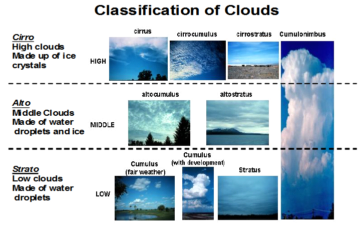 High level clouds are formed.The types of clouds are classified by their shape and their altitude in the sky.Different types of clouds worksheets learny kids there are many different types of clouds that can be seen.
