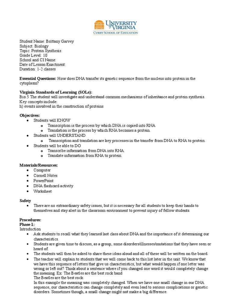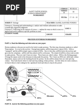 Visual Protein Synthesis Worksheet Answers